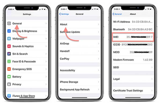 حتى لو كان الهاتف في علبته ويظهر كأنه جديد فهذا لا يستبعد بأن هذا الهاتف قد يكون مسروق وبالتالي من الخطوات الإضافية التي لا بُد أن تقوم بها هي التأكد من عدم سرقة الجهاز وإعادة بيعه، وللتأكد من هذا عليك الدخول للإعدادات Settings وتختار عام General ثم تختار حول About ومن ضمن الخيارات التي ستظهر لك