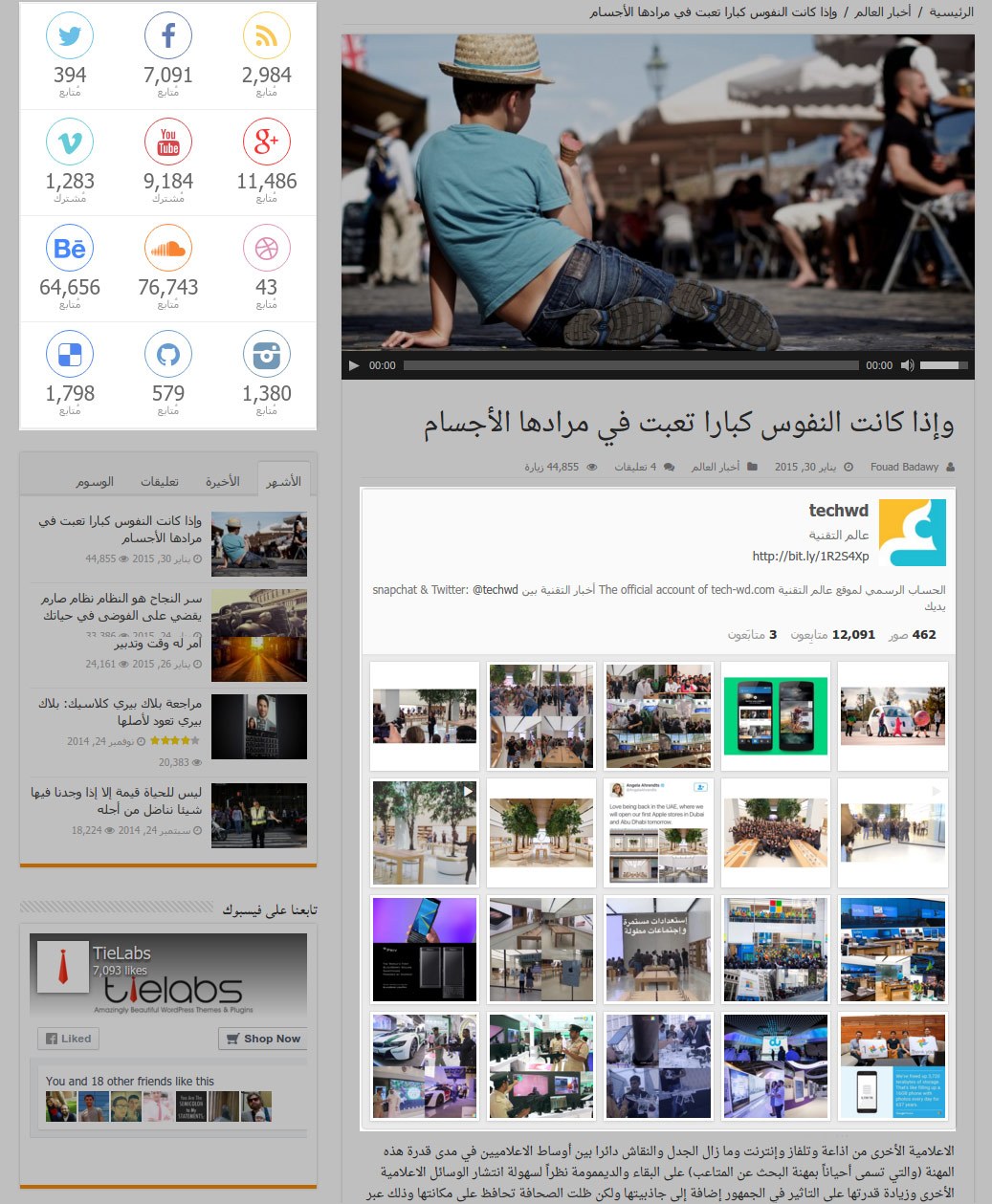 مما لاشك فيه أن قوة التواجد والانتشار على الشبكات الإجتماعية هي من مفاتيح النجاح لأي موقع، يوفر قالب صحيفة العديد من الخيارات لتسهل على الزوار مشاركة المقالات على الشبكات الإجتماعية.بالإضافة إلى العديد من الخيارات لتزيد التفاعل مع حسابات موقعك على الشبكات الإجتماعية مثل عرض إحصائيات عن عدد متابعينك على شبكات التواصل الاجتماعية المختلفة وبأشكال وألوان مختلفة.كذلك يوفر خيارات لعرض جديد حسابك في انستجرام أو عرض الصور الخاصة بهاشتاج معين سواء في تدوينتك أو في المربعات الجانبية widgets ويمكنك أيضاً عرض أخر تغريداتك من حسابك في تويتر وعرض مربع الإشتراك المباشر في صفحه فيسبوك وجوجل بلس الخاصه بموقعك أو الإشتراك في قناتك على يوتيوب.