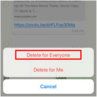 سواء كنت تستخدم نظام iOS للآيفون أو نظام الأندرويد عليك أولاً تحديد الرسالة ثم اختيار حذف Delete أو الضغط على أيقونة الحذف، ستظهر لك قائمة تتيح لك إما حذف الرسالة من جهازك فقط Delete For Me وهو الخيار العادي، أو حذف الرسالة من جهازك وجهاز المستلم Delete For Everyone وهو الخيار الجديد الذي نتحدث عنه في هذا المقال.كيفية حذف رسالة الواتساب بعد إرسالها في الآيفون:
