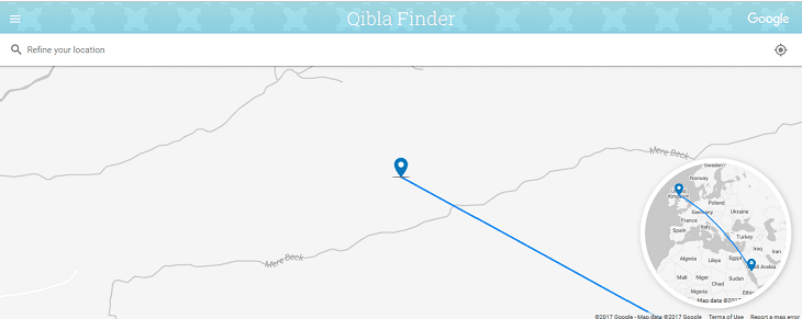 اتجاه القبلةوهي عبارة عن موقع أو أداة تساعدك في تحديد اتجاه القبلة بشكل دقيق وصحيح (هذا هو رابطها:
