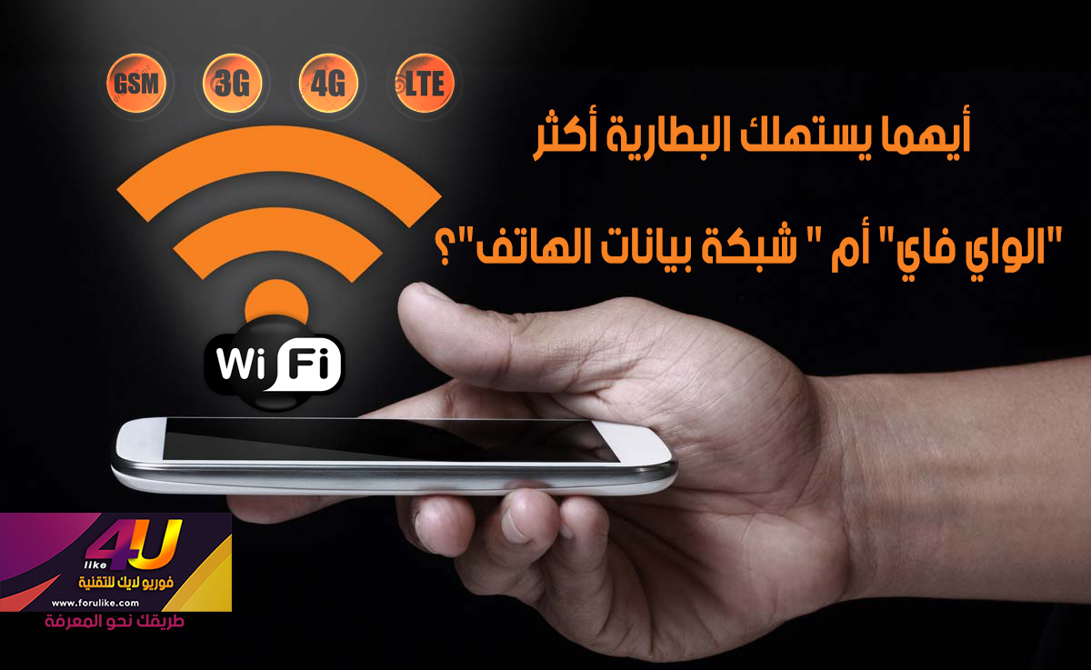 من خلال تجربة طويلة في استخدام أنواع متعددة من الهواتف وأنظمة التشغيل المختلفة، مثل نظام الأندرويد في أجهزة: (سامسونج، هواوي، لينوفو)، ونظام iOS في أجهزة: (آيفون 4، آيفون 5 إس، آيفون 6، آيفون 6 بلس). استنتجت أي الشبكات استهلاكاً للبطارية.<a name=\'more\'></a> ومن خلال تجربتي الطويلة مع كل هذه الأجهزة وملاحظة مدى استهلاك طاقة البطارية أثناء الاتصال بشبكة البيانات الخلوية سواء على وضع 3G أو في وضع 4G وأثنا ء الاتصال بشبكة الواي فاي (WiFi) عند الاتصال بالإنترنت على هذه الهواتف. معظم الناس يعتقد دائما أن استخدام شبكة واي فاي هو صاحب الاستهلاك الأكثر ويستنزف البطارية بشكل أكبر مقارنة بالاتصال بالإنترنت عن طريق شبكة البيانات الخلوية للهاتف، ولكن المفاجأة أن النتيجة كانت العكس، حيث أن الاعتماد على شبكة البيانات الخلوية للهاتف أثناء الاتصال بالإنترنت هي من تستنزف كمية أكبر من طاقة بطارية الهاتف!! لماذا؟نعم الاتصال بالبيانات الخلوية هي أكثر شيء استنزافا لبطارية هاتفك بدون منافس سوى إضاءة الشاشة، لاحظت أن آداء البطارية يكون أفضل في حالة اعتمادي على شبكة الواي فاي من اعتمادي على شبكة البينات الخلوية للهاتف، لأن عند اتصالك باستخدام الواي فاي تكون نقطة اتصالك بالواي فاي (الراوتر) هي نقطة واحدة وتكون عادة قريبة من الهاتف مما يجعل الهاتف لا يقوم بعملية بحث مستمر على الشبكة لذلك لا يستهلك كمية كبيرة من موارد هاتفك.أما على العكس عند اعتمادك على شبكة البيانات الخلوية للهاتف سواء 3G أو 4G LTE وخصوصا عند تحركك من مكان إلى آخر فإن هاتفك يقوم بشكل شبه مستمر ومعاناة دائمة في البحث عن أقرب برج لشبكة الاتصال الخلوية في منطقتك وينتقل من شبكات متعددة عندما تتضعف أو تقوى الشبكة فتكون غير مستقرة وخاصة عندما تكون إشارة شبكة الاتصال ضعيفة فيكون الجهد المبذول من هاتفك أكبر ويعاني أكثر من أجل الحصول على نقطة الشبكة الأفضل، حيث تتأثر من مدى قربك أو بعدك عن برج شبكة الاتصال التابعة لشركة الاتصال المزودة بالخدمة، كما أنها تتأثر أيضا بحالة الطقس والمؤثرات المحيطة بك مثل المباني والأبراج وحركة السيارات وغيرها، كما أن ستلاحظ أن أكثر الأوقات التي تستنزف فيها طاقة بطارية هاتفك هي أثناء الانتقال في مكان إلى آخر بالسيارة وأثناء السفر لأنك في هذه الوضعية يكون هاتفك في حالة بحث دائم عن أقرب برج شبكة ليتصل به هاتفك وينتقل من برج إلى آخر وعندما تضعف إشارة الشبكة يزداد استهلاك طاقة البطارية بشكل ملحوظ.