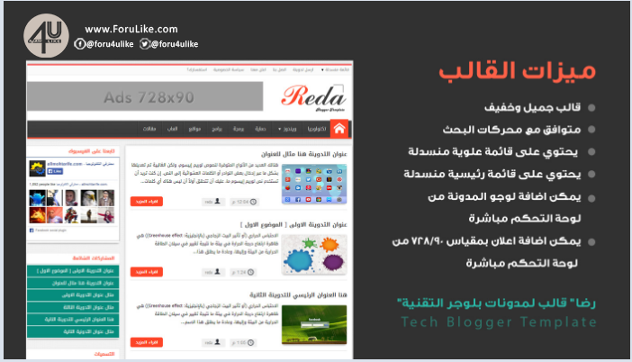 قالب بلوجر Reda للمدونات التقنية الأصلي مجاناً |