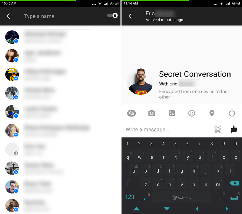 عبر إعدادات تطبيق مسنجر يمكنك تفعيل تشفير المحادثات من النهاية إلى النهاية بحيث لايمكن لأحد الإطلاع على رسائلك حتى فيس بوك نفسها.لكن هنا ملاحظة هامة أن تشفير المحادثات على مسنجر فيس بوك ليس مفعلاً افتراضياً لكل الدردشات، بل عليك أثناء البدء بمحادثة جديدة أن تبدأها كمحادثة مشفرة. ولا يدعم التشفير الرسائل والمحادثات القديمة، كما يجب أن يكون لدى المستخدمين طرفي المحادثة أحدث نسخة من مسنجر فيس بوك.عندما تريد بدء محادثة جديدة ستجد في الأعلى أيقونة القفل عند تفعيلها بنقلها إلى اليمين يمكنك البدء بدردشة خاصة مشفرة وستتحول القائمة إلى اللون الأسود. الجدير بالذكر أن هذا التشفير يعمل فقط بالمحادثات الثنائية وليس الجماعية. وينطبق التشفير ليس فقط على الرسائل النصية المتبادلة بل حتى الصور والملصقات لكنه لا ينطبق على مقاطع الفيديو والصور المتحركة.لو أردت تطبيق التشفير على محادثة حالية، اضغط على اسم المستخدم الذي تتحدث معه أو زر حرف i في أعلى الشاشة واختر منها المحادثة السرية لتفعيل التشفير على هذه المحادثة من الآن فصاعداً.لا نعلم السبب الذي دفع فيس بوك لتعقيد الأمور نوعاً ما في مسنجرها مقارنة بتفعيل التشفير افتراضياً في كل محادثات واتساب. من الممكن جداً أن ينسى المستخدم تفعيل التشفير يدوياً أو لا ينتبه لهذا إطلاقاً خاصة أنها لم تذكره في قائمة الأشياء الجديدة بتحديث التطبيق.