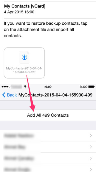 - يمكنك استعادة النسخة الاحتياطية من قائمة جهات الاتصال الخاصة بك في بضعة ثواني بضغطة واحدة.</li>