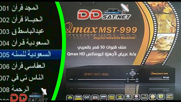 تحميل ملف قنوات 50 قمر عربي بخط عريض لأجهزة كيوماكس Qmax HD بتاريخ 10/15